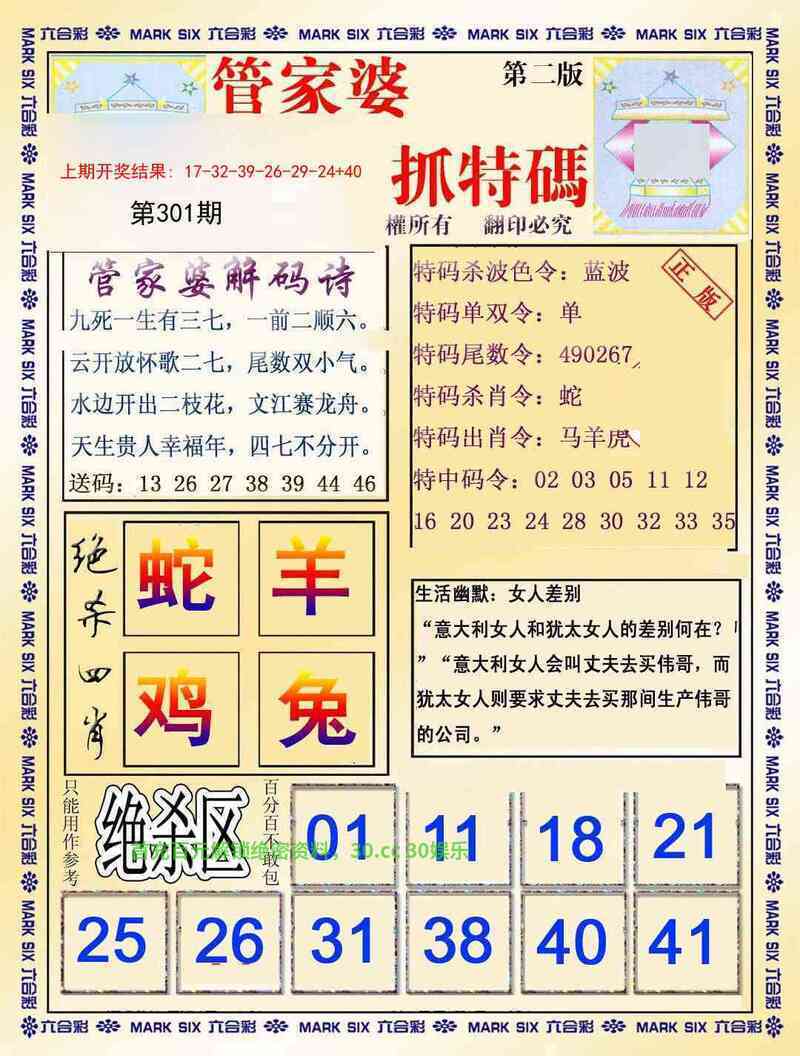 | 301期(单双+两肖中特) |